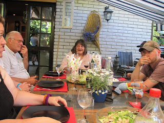 Slutligen fick jag tag i E och tog mig hem till henne på 5 minuter, sen fick jag träffa hennes trvliga man som jag hört så mycket gott om och han var mycket riktigt en trevlig karl. Sen åt vi kräftor till middag, de hade blivit kvar sen förra årets fångst och nu är det ju dags för nytt fiske. Det var jättegott och vi hade trevligt. Sen plcokade vi undan och så åkte vi och tittade till hennes hästar och åkte sen vidare till Es kompis A som jag ju lärt känna för några veckor sedan. Hon bor i ett litet hus precis som jag och vi har gjort liknande val i renoveringen av huset och jag tyckte mycket om hennes hus. Dessutom var hon hundvakt till sina föräldrars trevliga tax Pelle och det kändes hemtamt för mig att ha en tax på foten under bordet. Pelle är strävhårig, jättefin, urtrevlig och dessutom en fin avelshund med en massa barn. A bjöd på mumsiga kantarellmackor och te och vi hade jättetrevligt. Jag tråkade nog visserligen ut dem lite med att visa foton på datorn, jag har lätt för att bli för entusiastisk när det handlar om mina bilder. Ja, när det gäller andras också faktiskt.